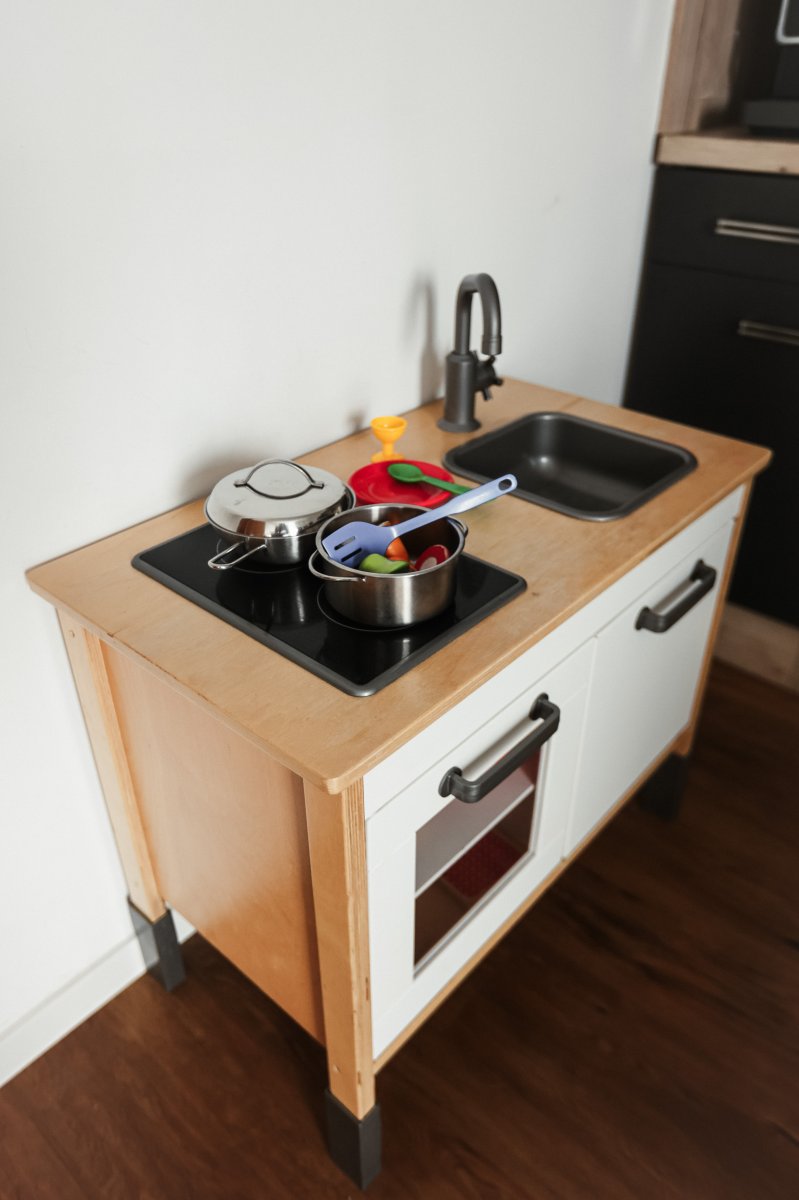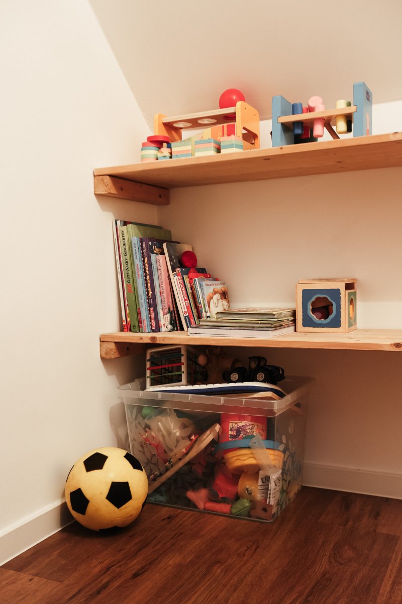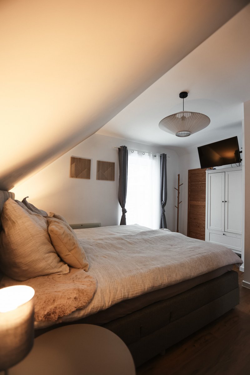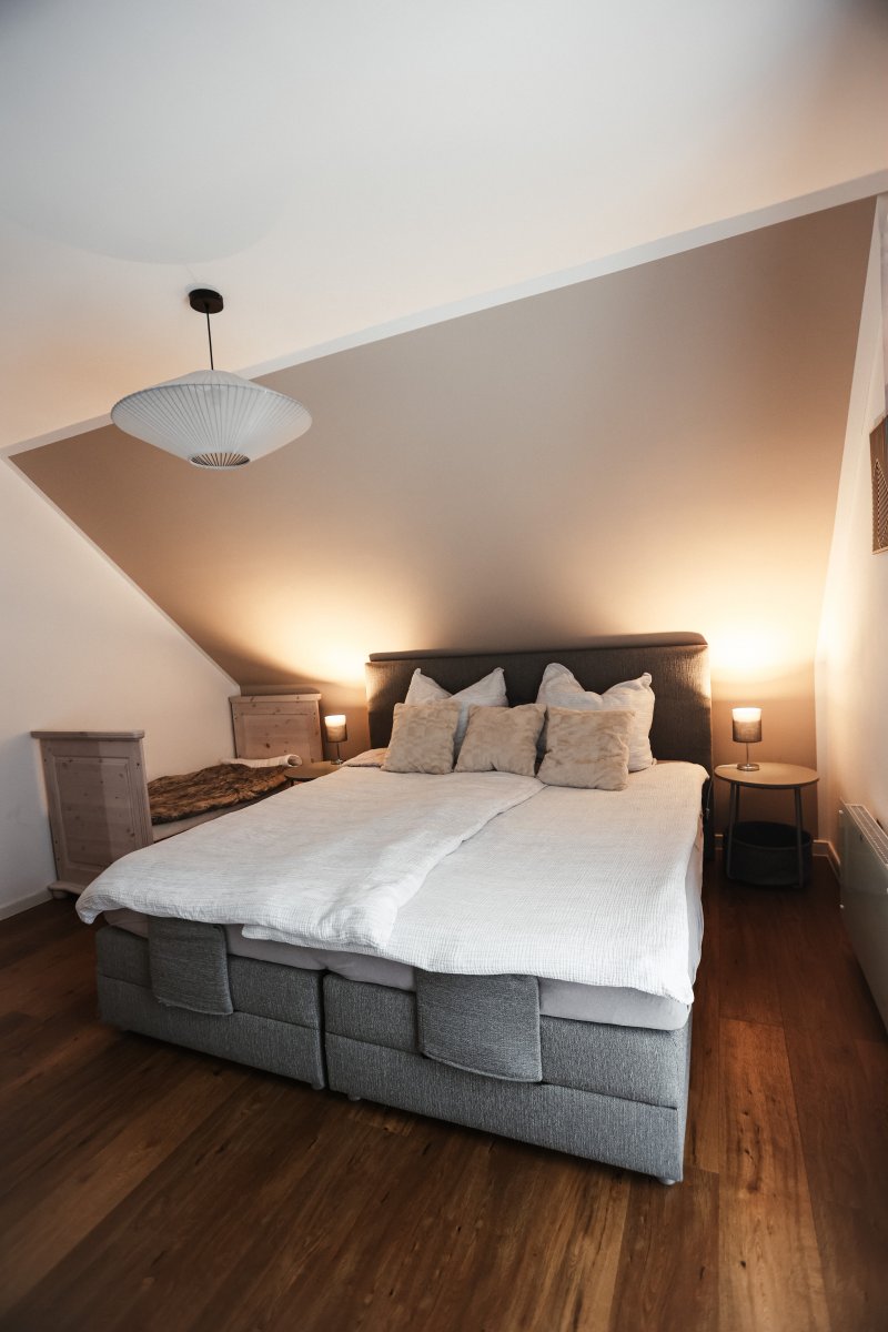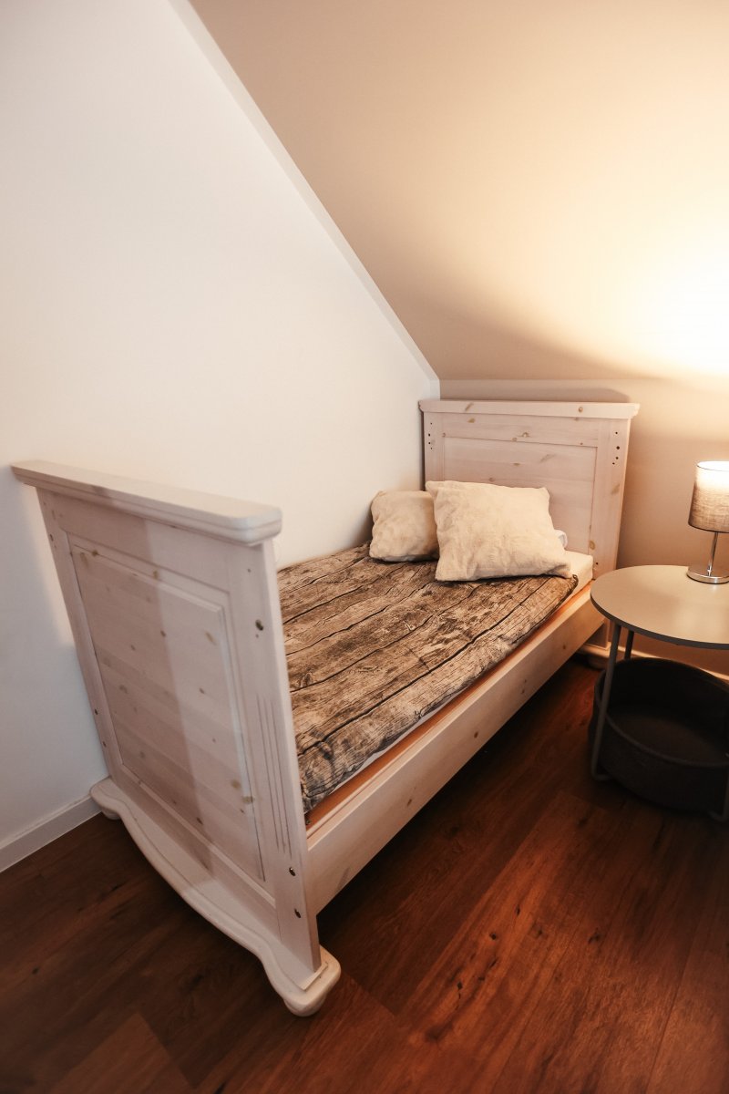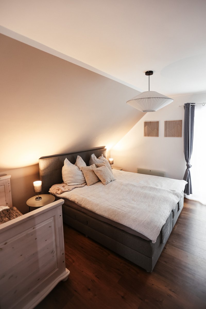 Das Ferienhaus verfügt über zwei komfortable Schlafzimmer mit je einem Doppelbett, ein Kinderbett (70x140 cm) im großen Schlafzimmer sowie ein Kinderreisebett und einen Hochstuhl, sodass auch die kleinen Gäste bestens versorgt sind. Ein Schlafsofa im Wohnzimmer bietet zusätzliche Schlafmöglichkeiten für 2 Personen. Für Unterhaltung sorgen eine Auswahl an Spielen, Büchern und Malbüchern.