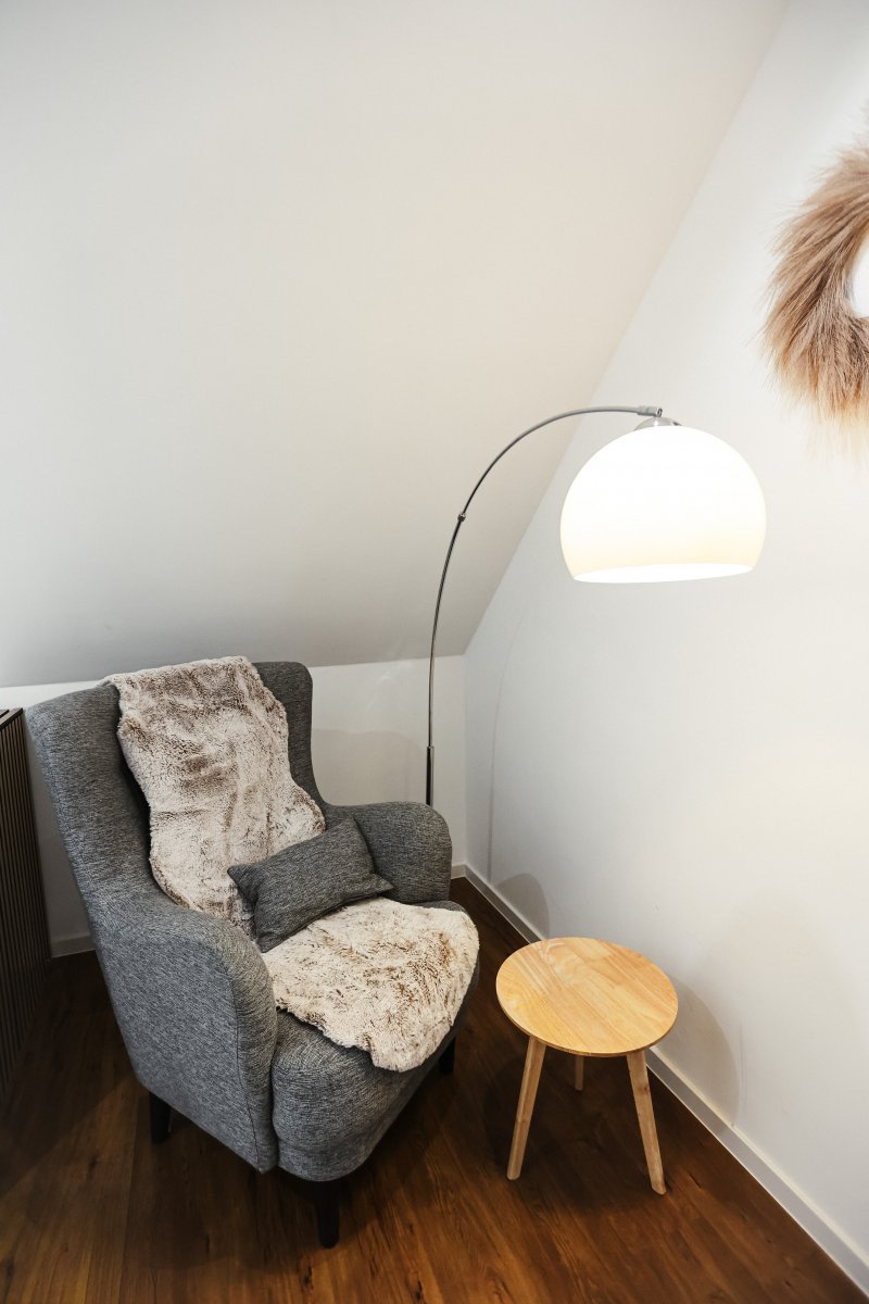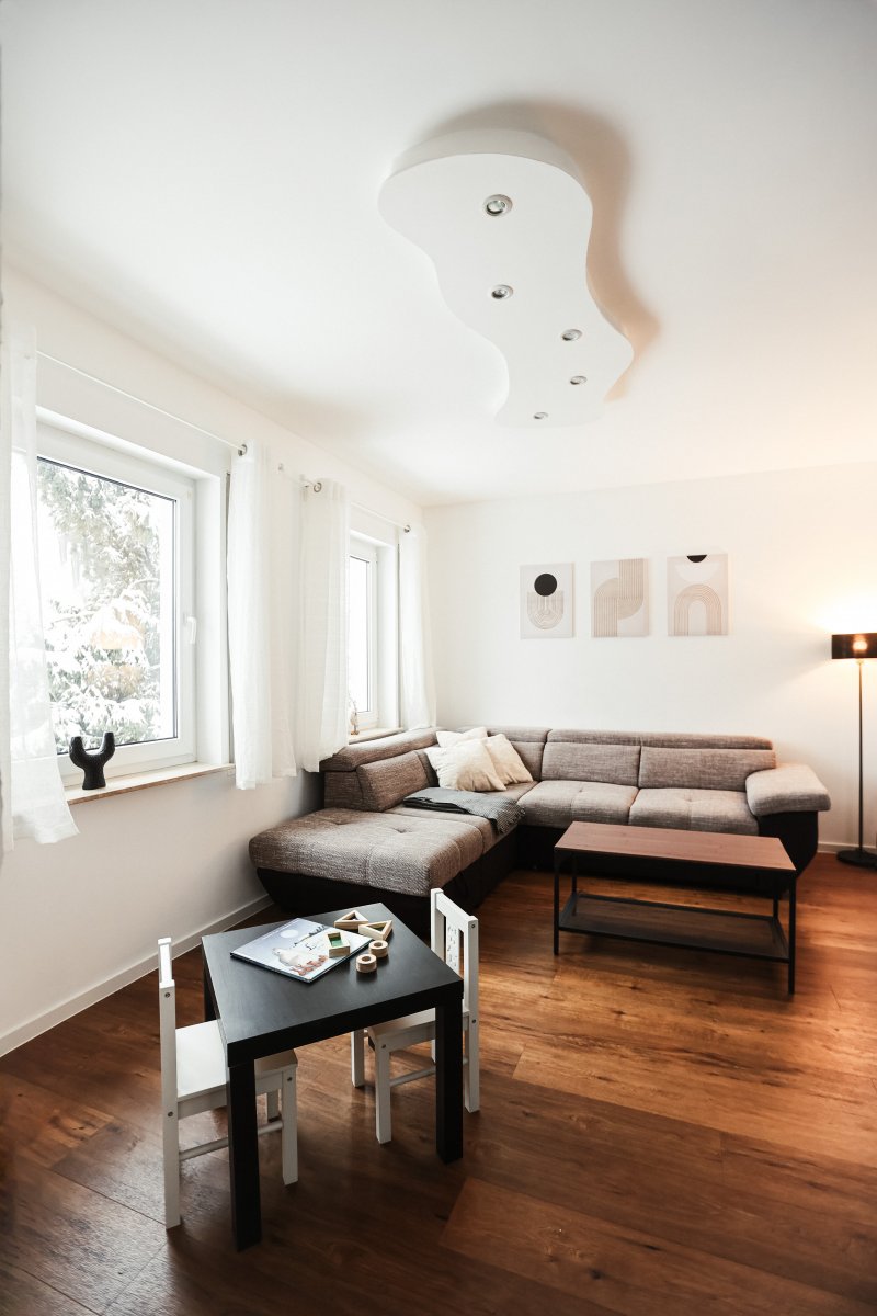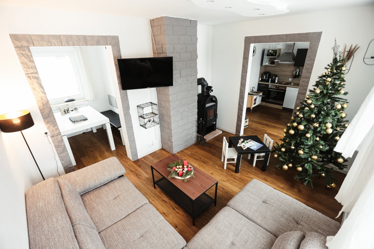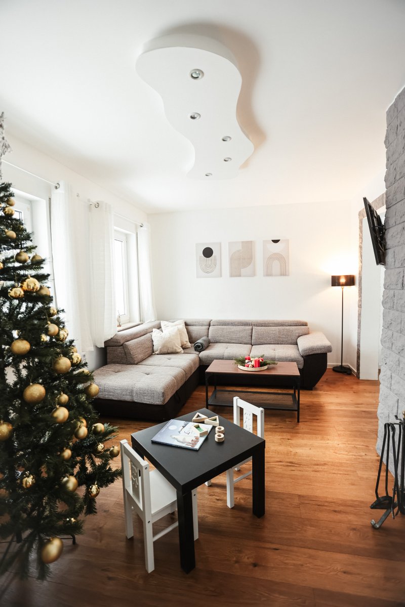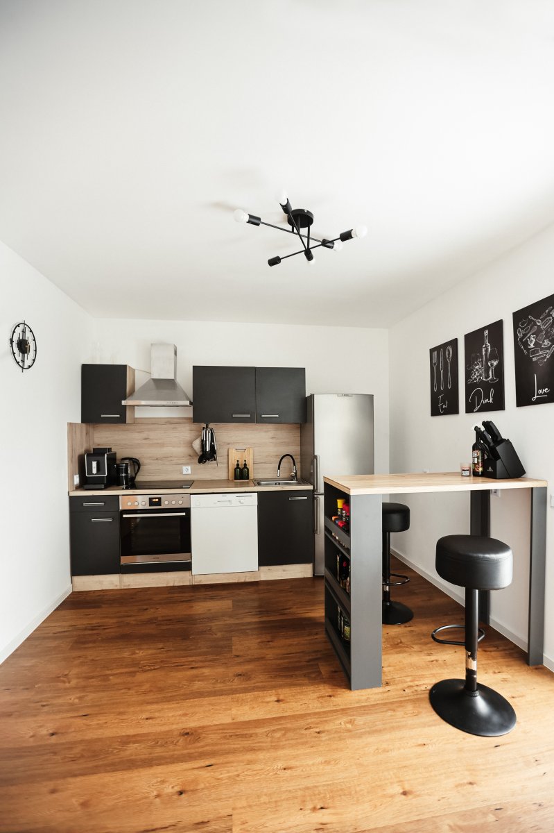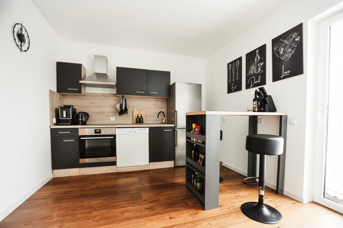 Genießen Sie die großzügige Terrasse, die perfekt für entspannte Stunden im Freien ist. Das lichtdurchflutete Wohnzimmer mit Kamin und offener Küche lädt zum Verweilen ein und bietet eine gemütliche Atmosphäre. Die moderne Küche ist mit einem Backofen, Induktionsherd, Wasserkocher, Toaster, Kaffeevollautomat und Geschirrspülmaschine ausgestattet. Öle und Gewürze stehen Ihnen ebenfalls zur Verfügung, damit Sie Ihre kulinarischen Fähigkeiten entfalten können.